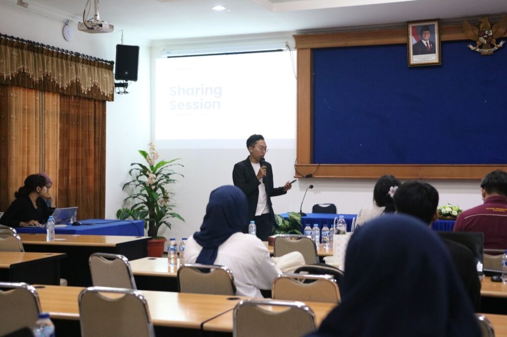 Setelah sesi sharing alumni oleh Difandi, rangkaian kegiatan dilanjutkan dengan sesi berbagi akademik dari salah satu mahasiswa Universiti Teknologi Malaysia (UTM) yang memaparkan secara singkat final project yang tengah ia kerjakan. Pemaparan tersebut membuka ruang diskusi interaktif antara mahasiswa UTM dan mahasiswa UNAIR, khususnya terkait tantangan penelitian serta perbedaan sistem akademik di masing-masing universitas. Diskusi ini menjadi wadah pertukaran wawasan dan pengalaman riset lintas negara yang memperkaya perspektif peserta.