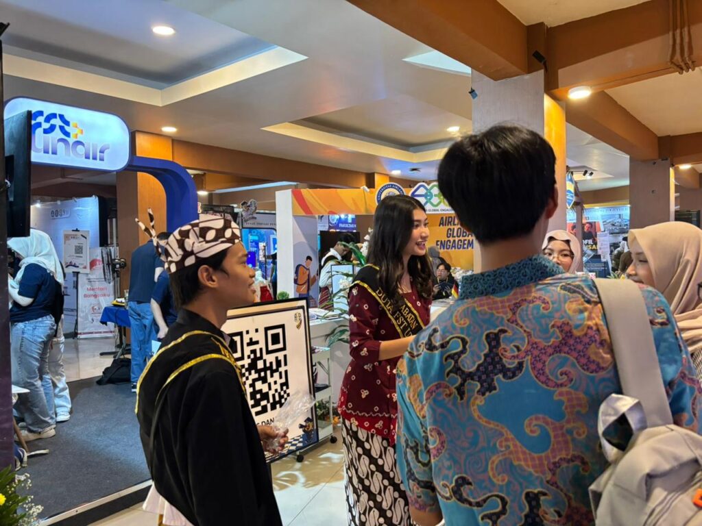 Booth FST UNAIR tidak hanya menyajikan informasi akademik, tetapi juga menampilkan peran aktif mahasiswa dalam pengembangan organisasi dan riset. Pengunjung memperoleh gambaran langsung mengenai dinamika kehidupan mahasiswa di lingkungan FST UNAIR.
