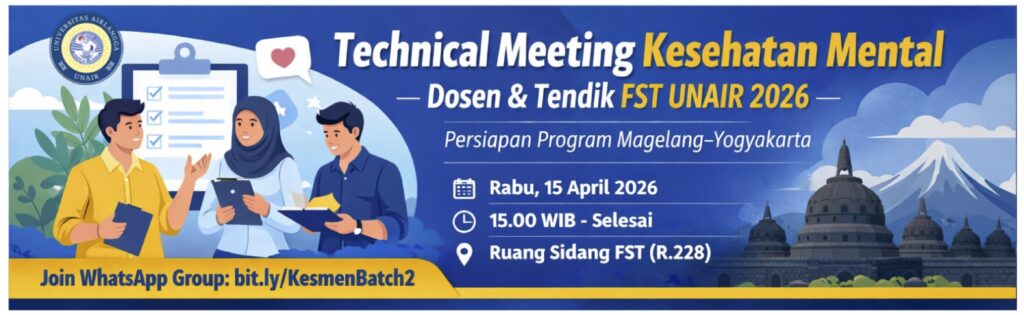 Fakultas Sains dan Teknologi (FST) Universitas Airlangga mengadakan technical meeting kesehatan mental dosen untuk memperkuat koordinasi kegiatan. Kegiatan ini membantu peserta memahami rencana pelaksanaan program.
